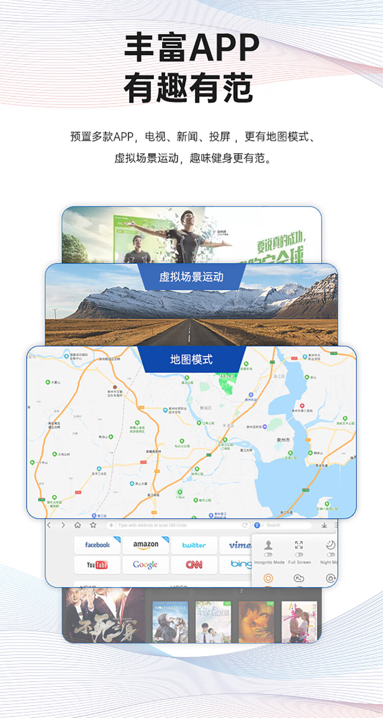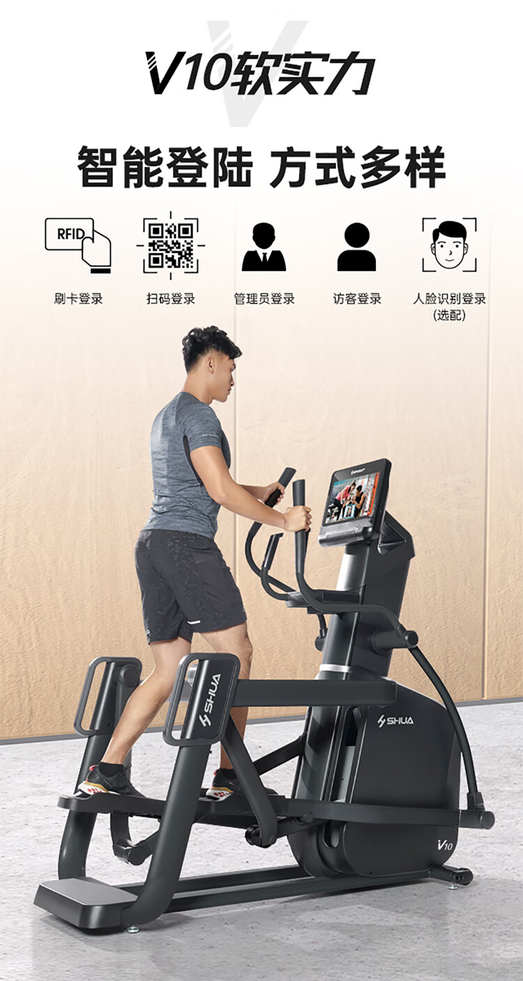 舒華高端跑步機SH-T9100T(V10+)擁有超大高清32寸10點觸控晶屏的工業屏,具有掃碼、刷卡、人臉識別等多種智能登錄方式,方便快捷,并且有在線教學、專業健身模式隨意切換,讓您開啟科學健身。